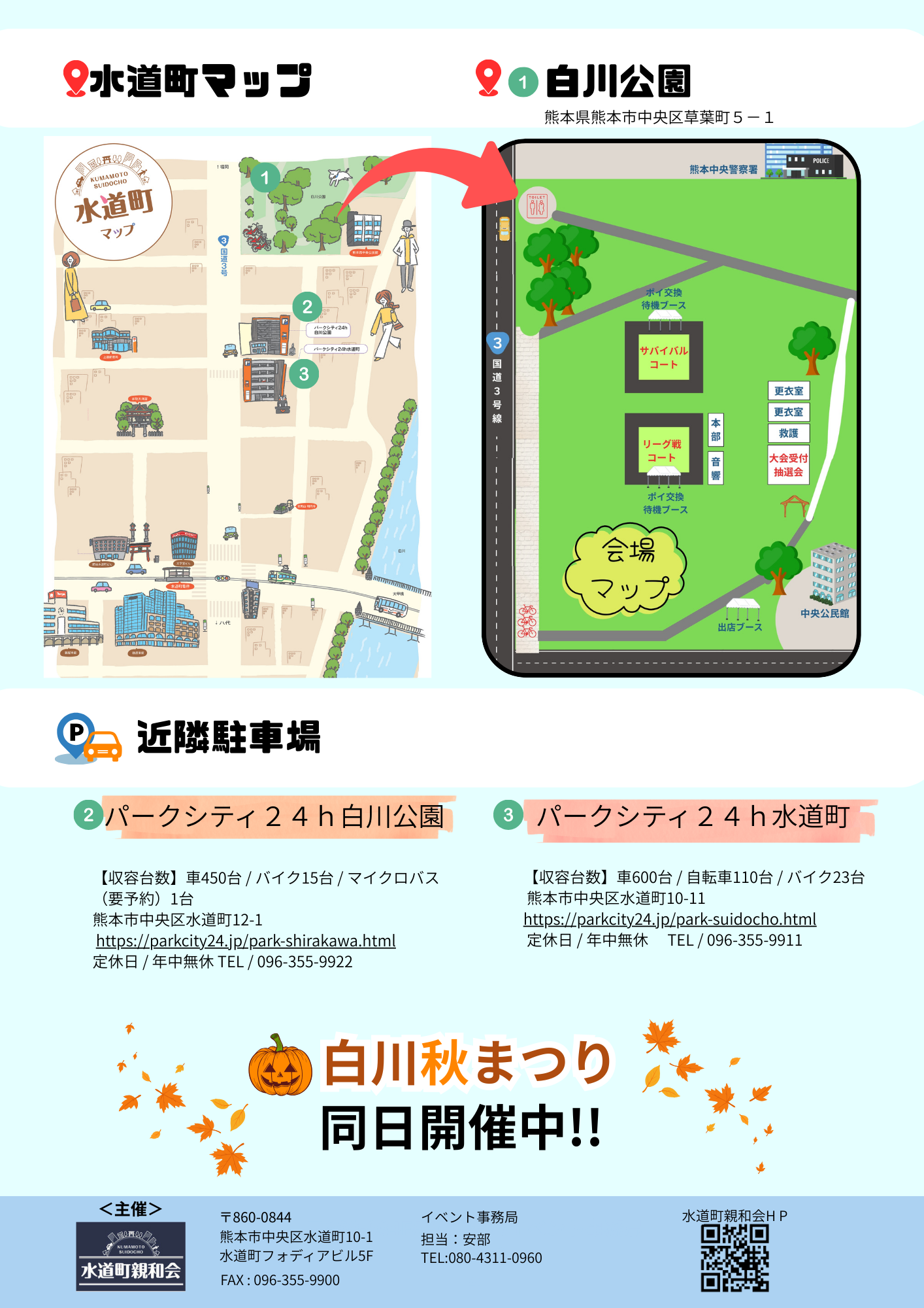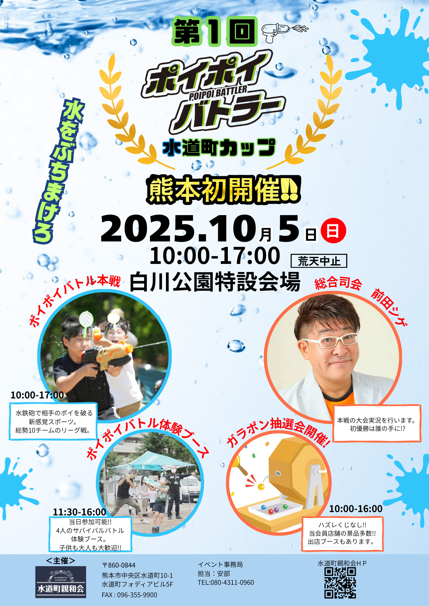 さらに、誰でも参加できる「ポイポイバトラー体験ブース」や、ハズレなしの「ガラポン抽選会」も開催!地域のお店の景品も盛りだくさん! 家族みんなで楽しめる1日!ぜひ白川公園へ遊びに来てください!